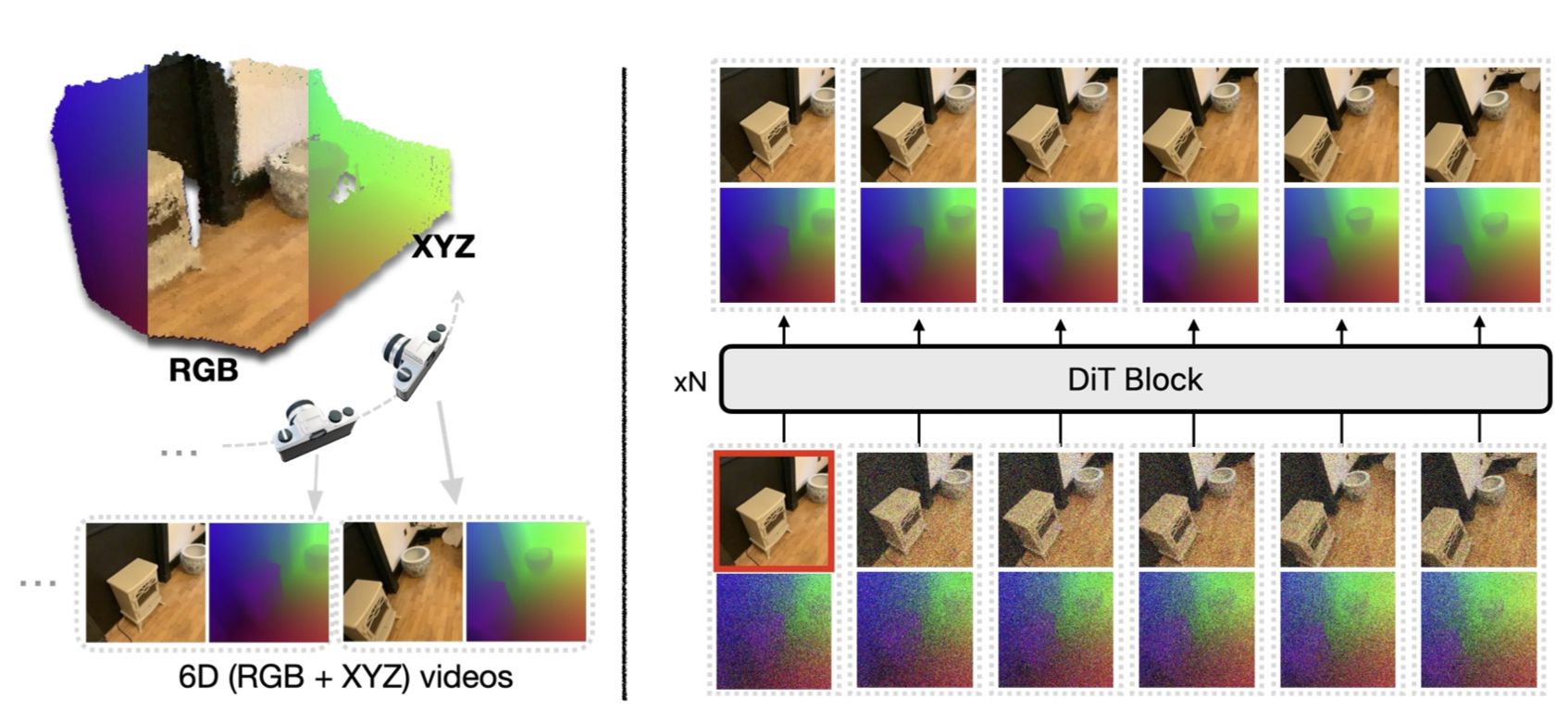 Knits diffusion with a global 3-D scene so every video frame keeps its bearings in the same universe.