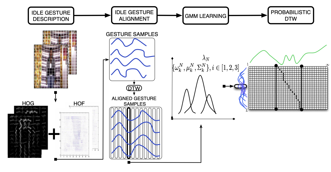 Mixes time warping with 3-D bag-of-words to keep gesture detection in sync.