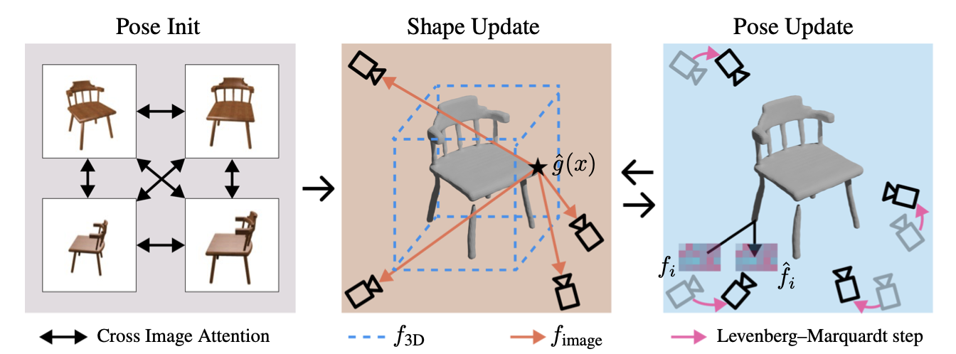 Squeezes the most geometry out of a handful of photos by optimising pose and shape together.