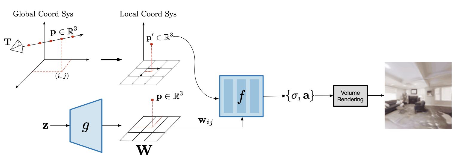 Generates scenes everywhere at once by letting every point consult its local pals.
